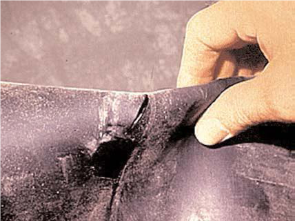 - Fissuration du matériau/fatigue – la température au-dessous de la vessie (membrane) ou du joint inférieure à la limite de la conception, normalement de -20° F à -40°F causera la fragilité et la fissuration de la membrane (vessie) ou du joint. Le gaz pré chargé au-dessous de 20% de la pression maximum de fonctionnement du système causera la fatigue par fléchissement excessif de la membrane (vessie).